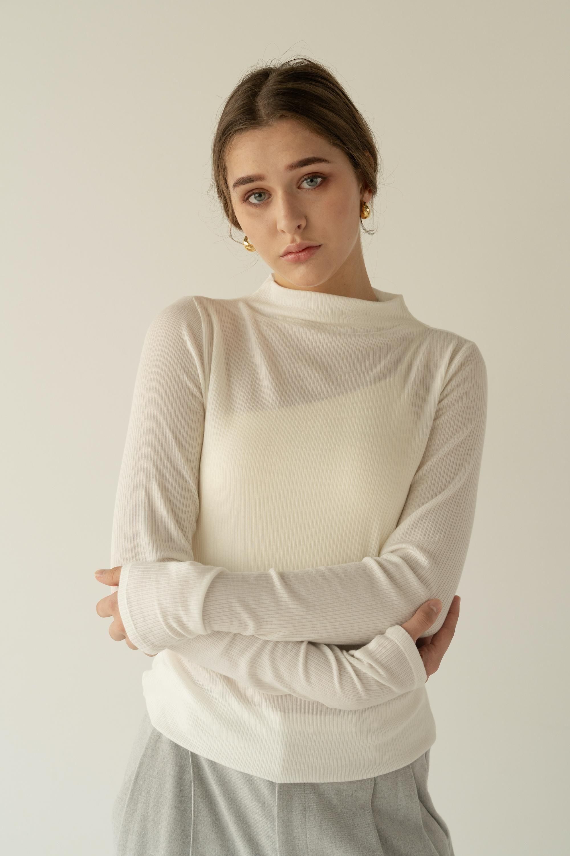 極細の糸で丁寧に編み立てられたシアー素材は、空気をふくむように軽やかで、肌に触れるたびにしっとりとした心地よさを感じられます。