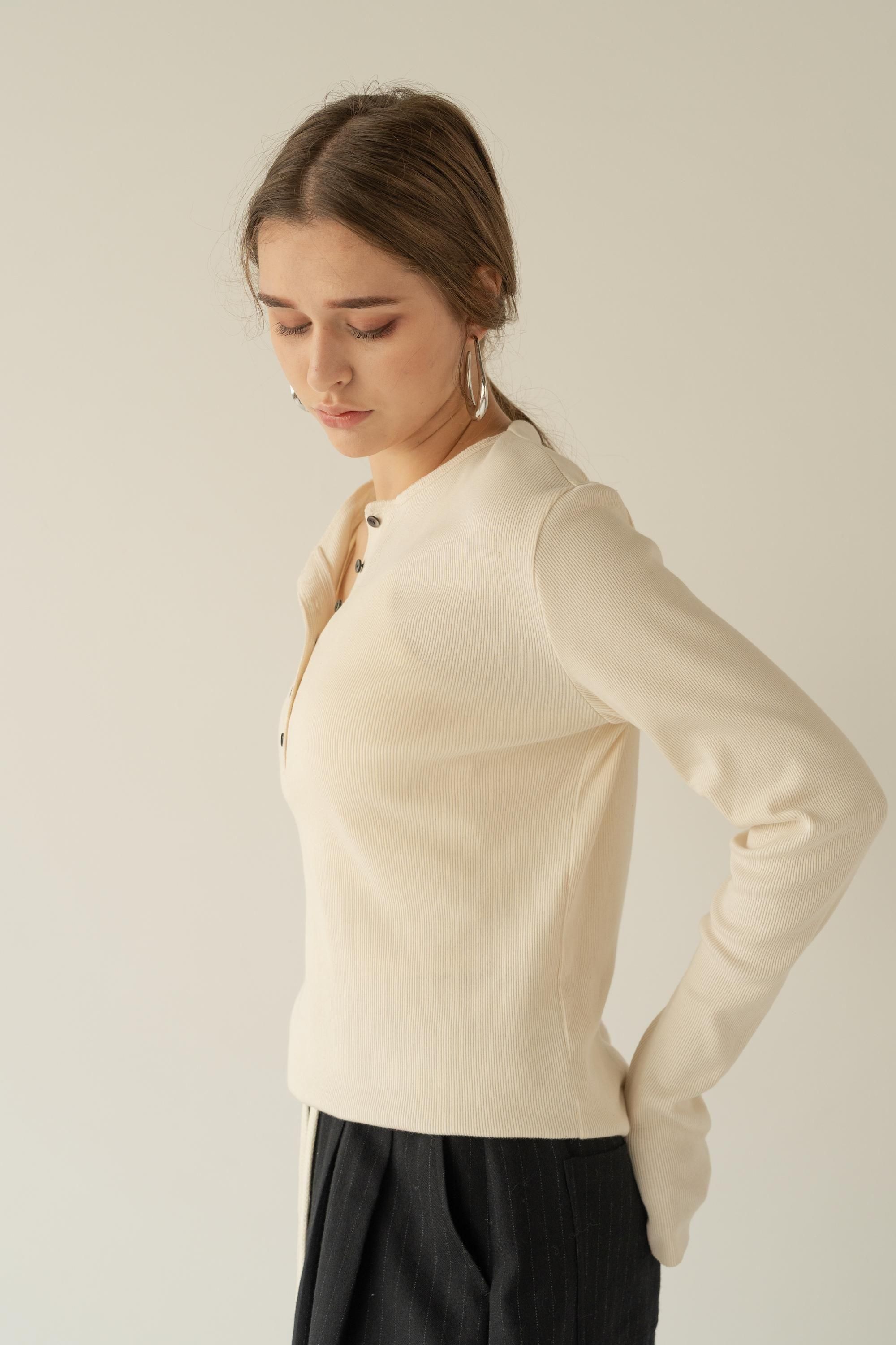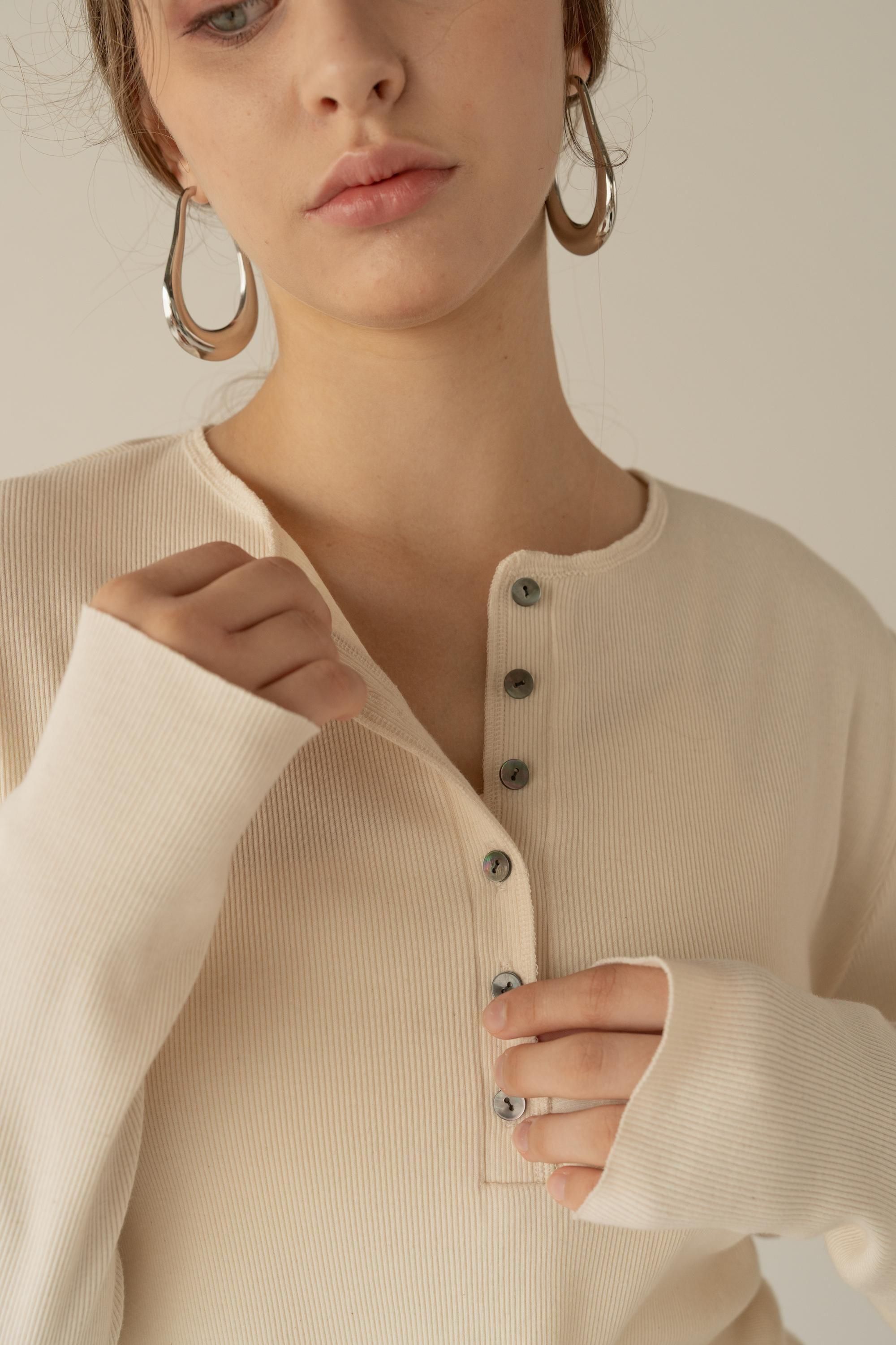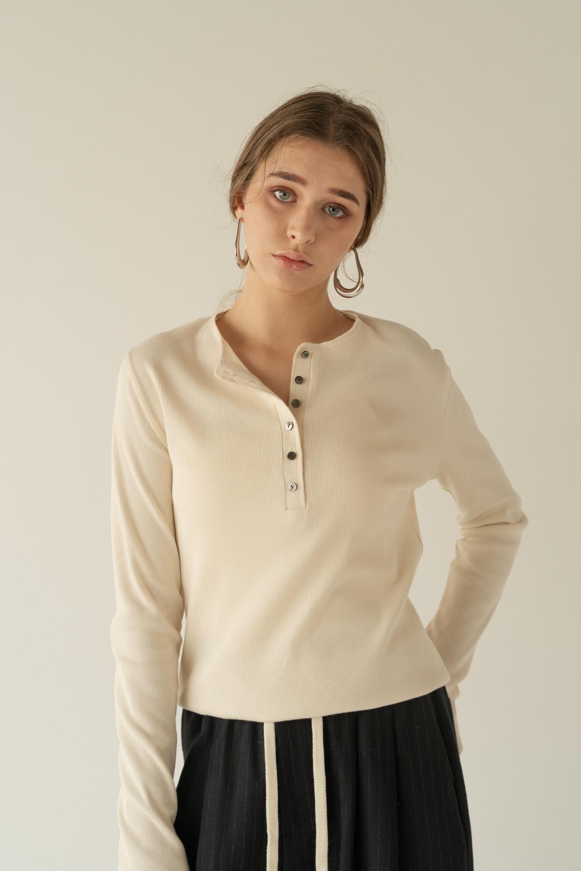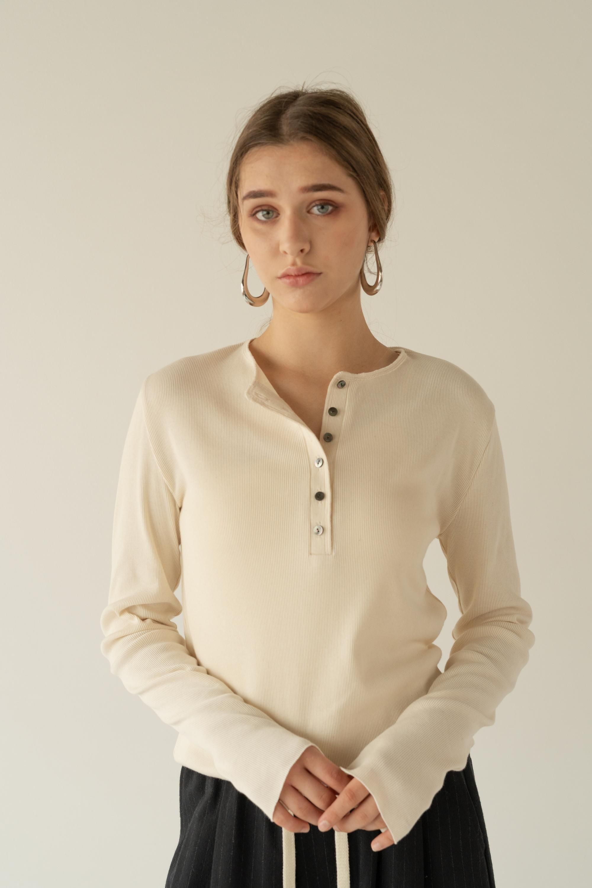 上質なトルコ産オーガニックコットンを使用した、肌にやさしいヘンリーネックカットソー。