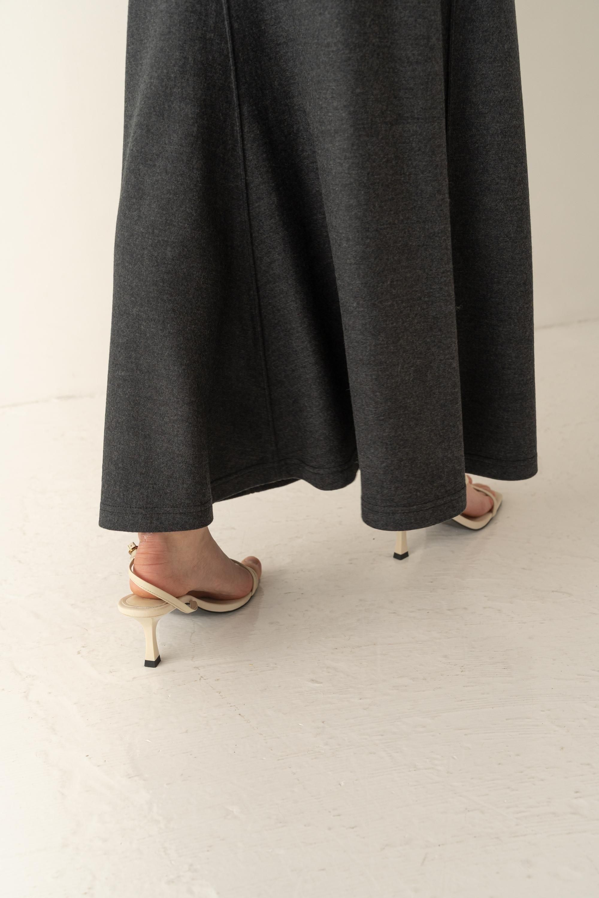 ヒップラインをすっきりと見せ、裾に向かって優しく広がるシルエットが女性らしさを引き立てます。