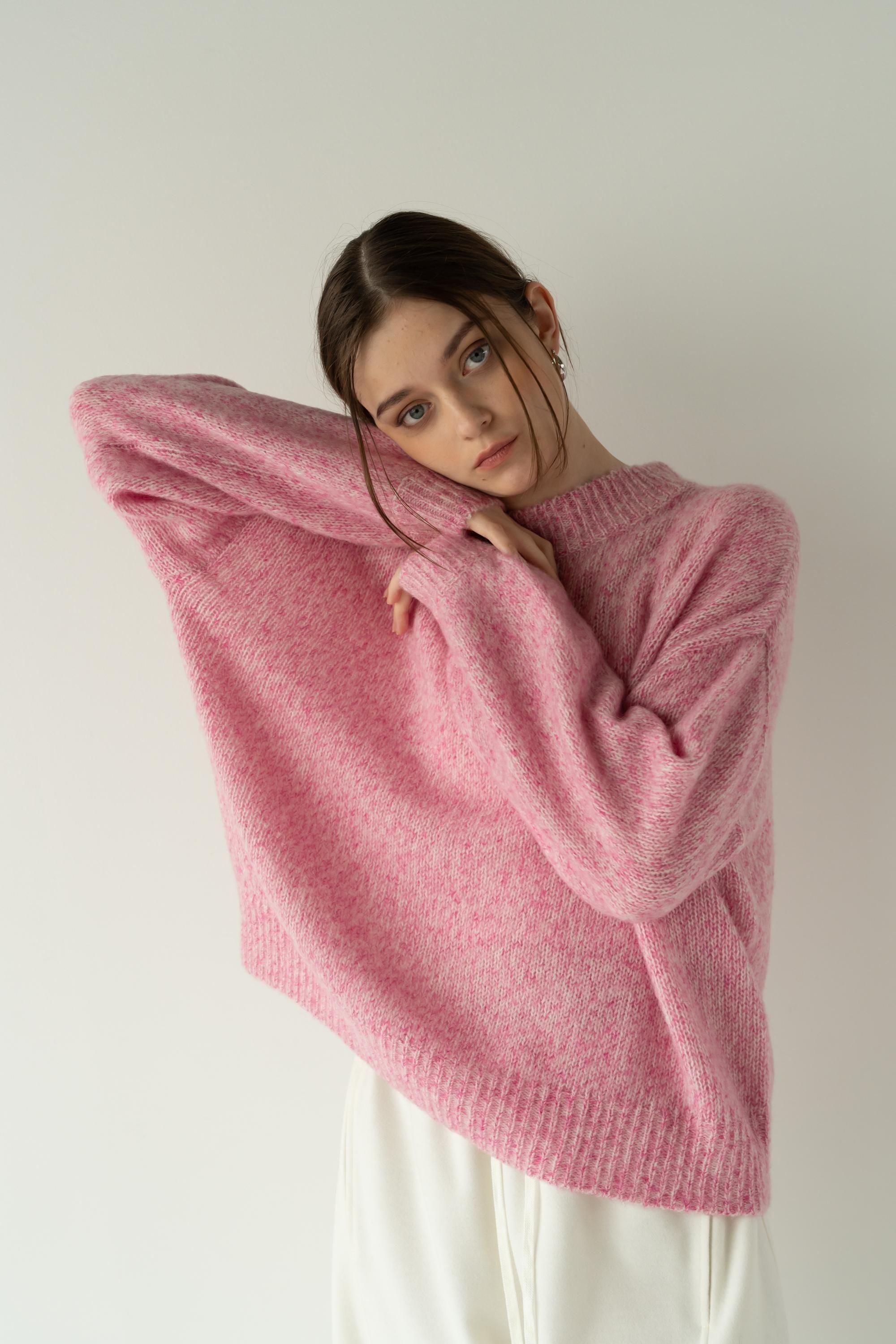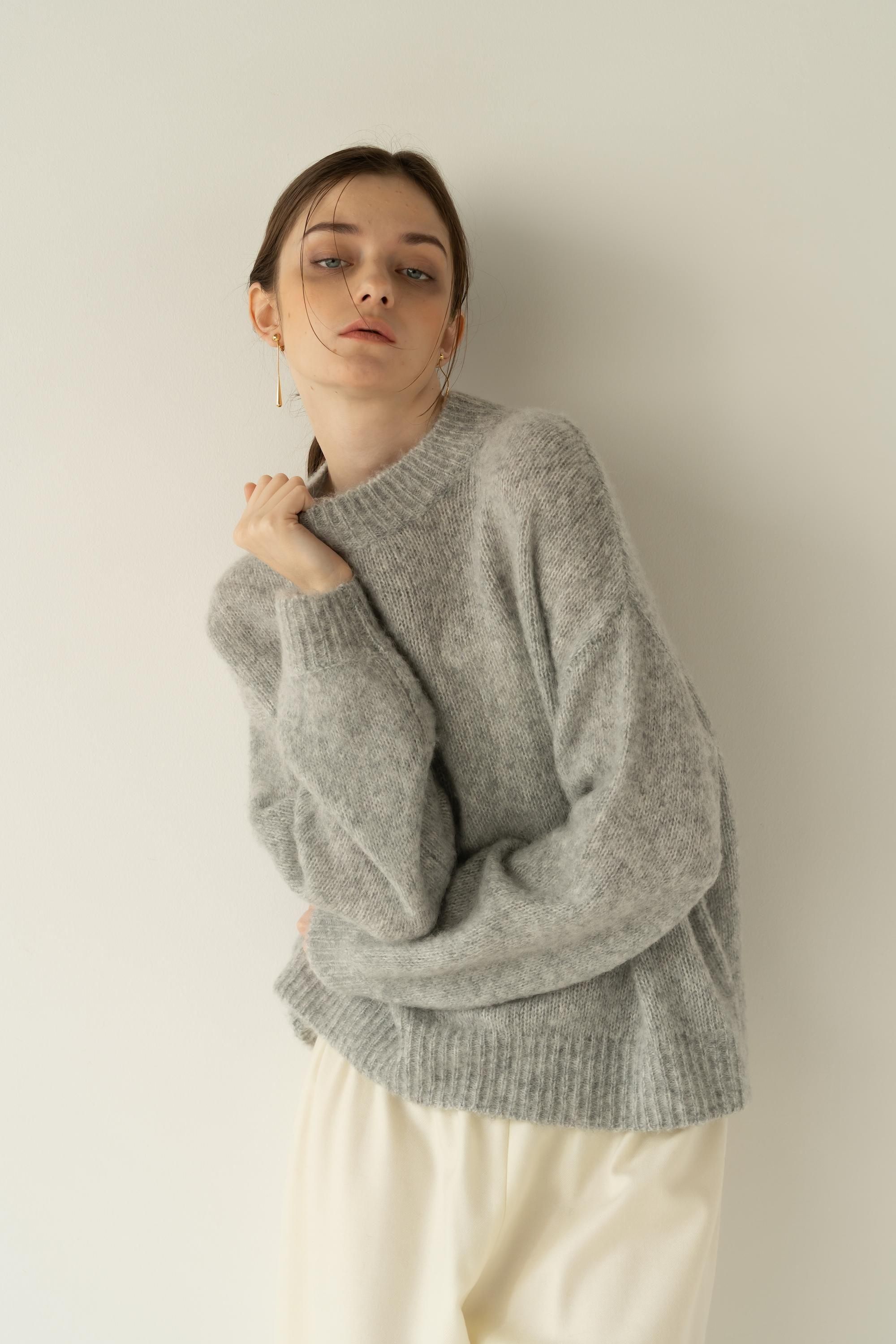 ふんわりとした肌触りが魅力の、ベビーアルパカのクルーネックニット。